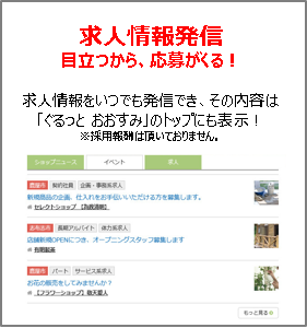 お手持ちのスマホやパソコンから、思い立ったときにいつでも・どこからでも、手軽にお店の情報を発信できます。